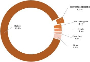 La superficie de Torrontés Riojano en el país (7.075 ha) la ubica en segundo lugar entre las variedades blancas para elaboración de vino.
