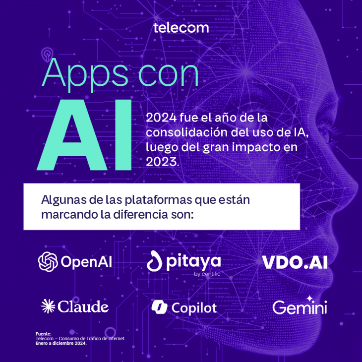 Tras un 2023 que marcó el inicio de la masificación, 2024 consolidó el uso de herramientas impulsadas por inteligencia artificial. Según el informe de Telecom, estas aplicaciones pasaron a integrar la vida diaria de los usuarios, no solo en el ámbito laboral, sino también en la educación, el entretenimiento y la productividad personal.