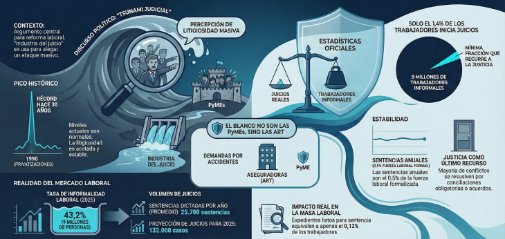 En definitiva, los números muestran que la llamada “industria del juicio laboral” funciona más como un recurso discursivo eficaz que como un fenómeno estructural verificable. Legislar sobre esa base implica intervenir sobre la excepción y no sobre la regla, con el riesgo de alterar de manera duradera el equilibrio entre capital y trabajo en la Argentina sin resolver las verdaderas fallas del mercado laboral.